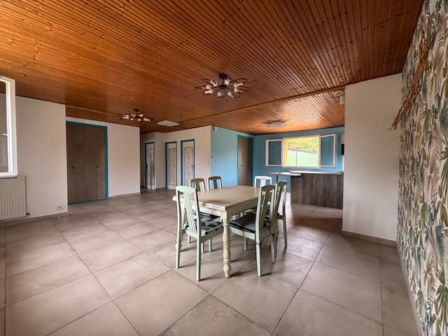 Proche commerces, maison de plain pied comprenant une pièce de vie avec cuisine aménagée, un cheminée avec insert, trois chambres,...