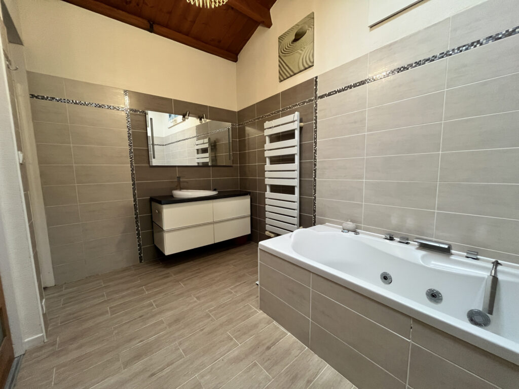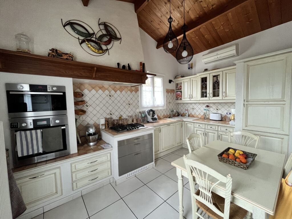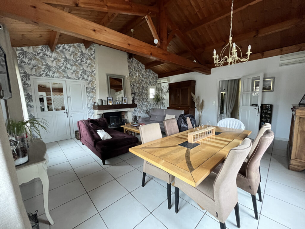 Dès l’entrée, vous serez séduits par l’atmosphère chaleureuse des lieux. Le séjour/salon, agrémenté d’une cheminée ouverte, invite à de beaux moments de convivialité en famille ou entre amis. La cuisine, fonctionnelle et lumineuse, complète parfaitement l’espace de vie. Un couloir avec placards dessert trois belles chambres disposant chacune de rangements intégrés, un bureau idéal pour le télétravail, ainsi qu’une salle de bains équipée d’une douche, meuble une vasque et placards. Atout rare : une dépendance (habitation) communicante offrant une véritable opportunité ! Elle se compose d’une pièce de vie avec cuisine ouverte, d’une chambre et d’une salle d’eau avec WC — parfaite pour recevoir famille et amis, créer un espace indépendant pour un adolescent, ou envisager un projet locatif. À l’extérieur, le charme opère tout autant : Terrasse avec barbecue pour vos soirées d’été, piscine avec pool house et abri d’été, jardin et terrain arboré avec arbres fruitiers, puits pour l’arrosage du jardin. Et pour finir la composition de cette belle propriété : un grand garage (42 m2), auvent, réserve, abri et poulailler.