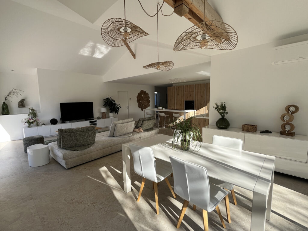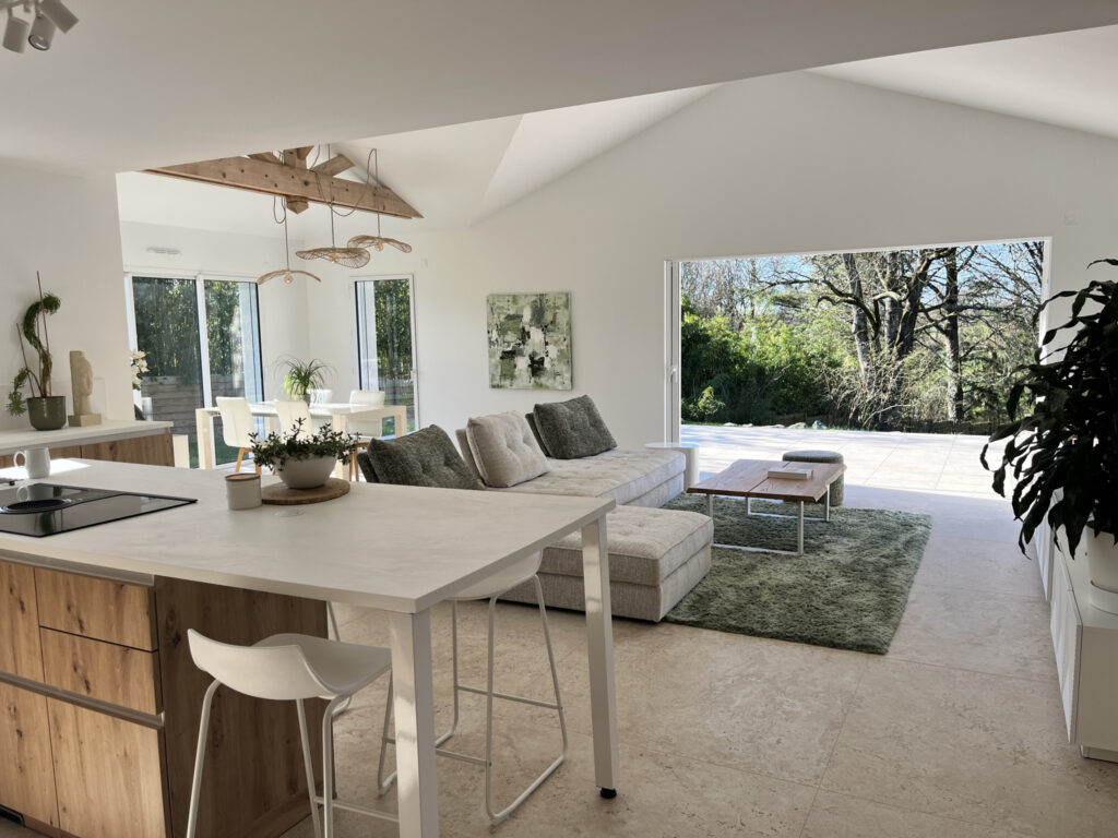 Découvrez une propriété récente d’exception nichée dans un écrin de verdure, au cœur d’un parc paysager d’environ 2 600 m2, offrant un cadre de vie rare, en parfaite harmonie avec la nature. Dès l’entrée, un hall élégant avec rangements intégrés vous accueille et dévoile des volumes généreux sublimés par une luminosité remarquable. La pièce de vie, aux lignes contemporaines et aux finitions soignées, s’ouvre largement sur l’extérieur grâce à de vastes baies vitrées offrant une vue dégagée sur l’horizon. La cuisine, entièrement équipée et aménagée avec des matériaux de qualité, conjugue esthétisme et fonctionnalité pour un confort au quotidien. L’espace nuit principal abrite une suite parentale, véritable cocon privé, dotée d’un dressing sur mesure et d’une salle d’eau avec WC. Une seconde aile parfaitement agencée accueille deux chambres supplémentaires ainsi qu’une salle de bain élégante, un WC, garantissant intimité et sérénité à chaque membre de la famille. Un cellier fonctionnel et un garage complètent les prestations de cette demeure aux finitions irréprochables. Idéalement située, dans un environnement paisible et privilégié tout en restant à proximité immédiate des commerces et commodités, cette propriété conjugue prestige, confort et art de vivre. Un bien rare sur le marché, destiné à une clientèle en quête d’exclusivité, de nature et de prestations haut de gamme.