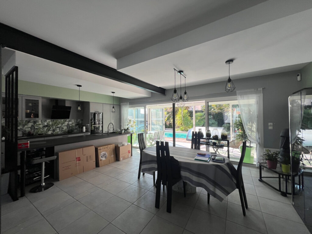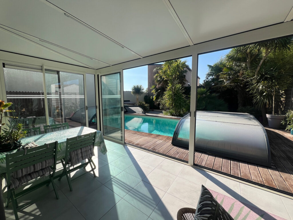 Située dans un quartier calme et recherché, à proximité immédiate des commerces et des plages, cette maison familiale offre de beaux volumes et un excellent confort de vie au quotidien. Elle se compose d’une vaste pièce de vie d’environ 70 m2, ouverte sur une véranda et un jardin clos sans vis-à-vis avec piscine chauffée 4 x 8 m sous dôme. À l’étage : 4 chambres, dont une suite parentale avec dressing et salle d’eau, ainsi qu’une salle de bains avec douche à l’italienne, baignoire et WC. Les prestations sont au rendez-vous : garage, cellier, pompe à chaleur réversible (chauffage/climatisation), volets roulants électriques, alarme, isolation renforcée. Exposition plein sud — Environnement calme et pratique : plages, marché Arago, grandes surfaces et thalasso à quelques minutes en vélo. Un bien lumineux, fonctionnel et prêt à accueillir votre famille. À visiter sans tarder !