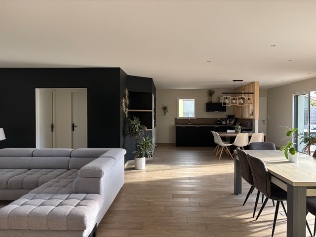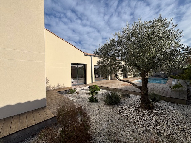Au cœur d’un environnement calme, sans le moindre vis-à-vis, cette élégante maison contemporaine offre un cadre de vie résolument haut de gamme. Conçue avec des matériaux de qualité, elle se distingue par son architecture, ses volumes généreux et sa luminosité. La pièce de vie, sublimée par une cuisine aménagée et équipée, offre un espace convivial, ouvert sur le jardin. L’espace nuit se compose de quatre chambres dont une suite parentale dotée d’un dressing et d’une salle d’eau privative aux finitions élégantes. Une seconde salle d’eau, deux WC, un bureau (chambre possible – 9 m2) et un cellier viennent compléter les prestations intérieures. À l’extérieur, le confort se prolonge : terrasse, piscine couverte et chauffée, véritable espace bien-être, garage de 36 m2, idéal pour collectionneurs ou amateurs d’espaces de stockage, préau de 29 m2, offrant un potentiel d’aménagement ou d’agrandissement. Parcelle d’environ 950 m2, paysagée et parfaitement intime Un bien rare, conjuguant élégance, discrétion et prestations premium pour une clientèle exigeante.