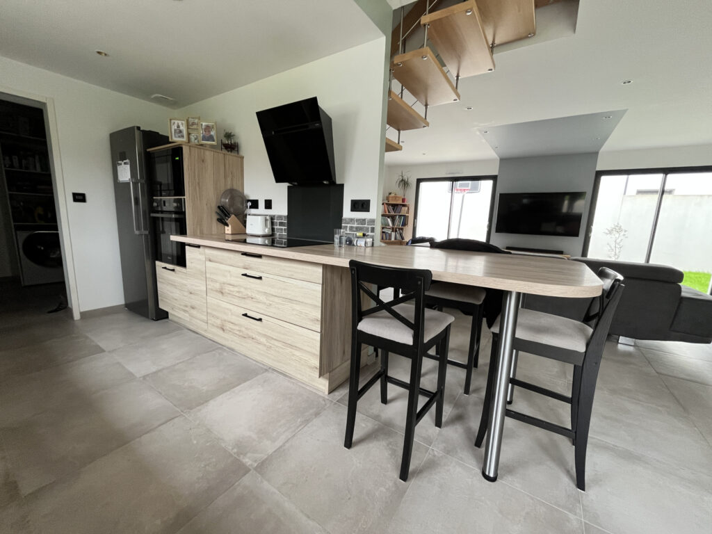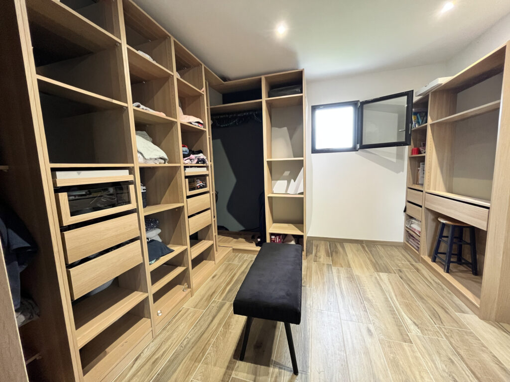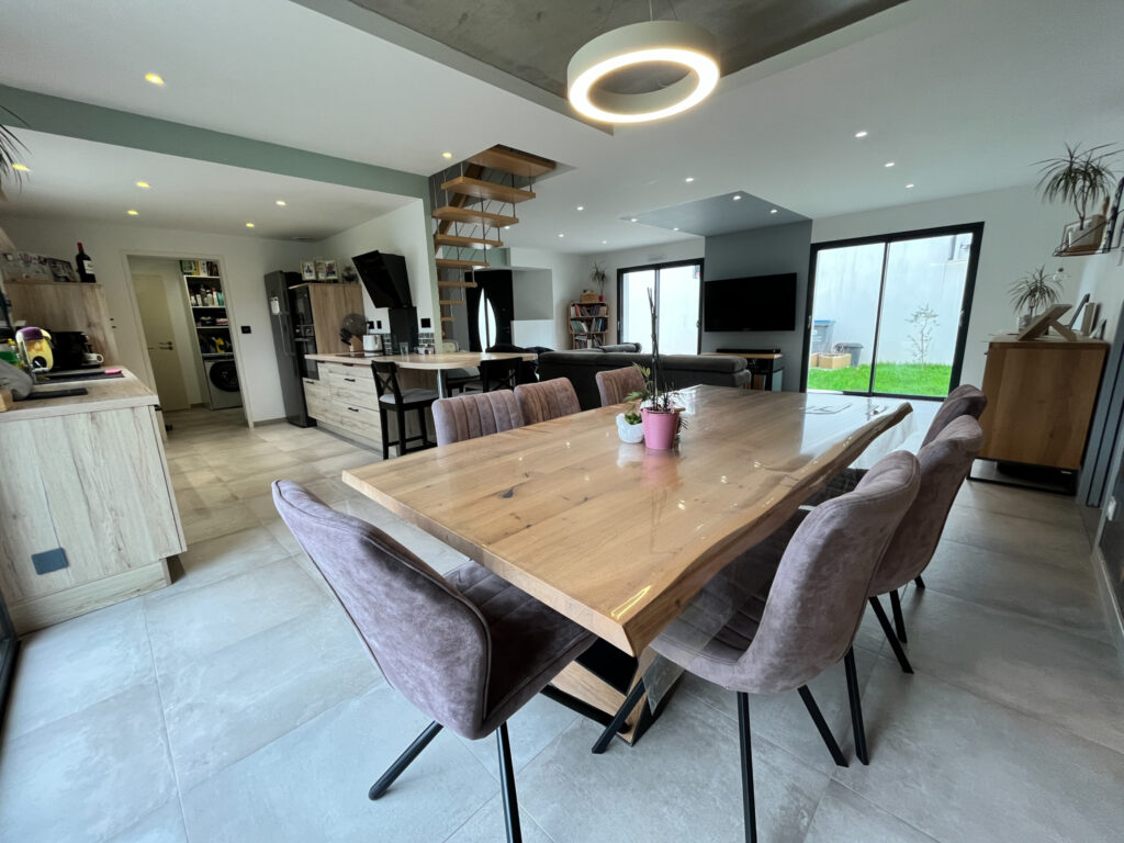 Entièrement équipée en domotique et disposant de panneaux photovoltaïques et de l’aspiration centralisée, la maison permet une gestion intelligente et centralisée du confort (chauffage, éclairages, volets, sécurité…), alliant modernité, praticité et économies d’énergie.